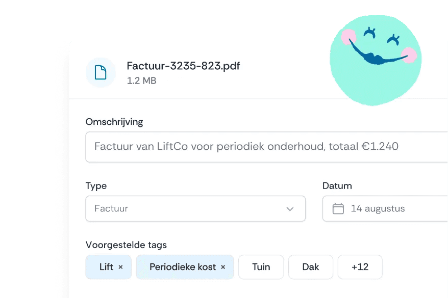 - Vrijwel foutloos beheer door directe kennis: gebruikers kunnen documenten op twee manieren beheren: gemeenschappelijke documenten (zoals de basisakte) worden gedeeld met de hele VME, wat de transparantie garandeert. Maar elke mede-eigenaar kan ook persoonlijke documenten (zoals individuele verzekeringspolissen) in een afgeschermde omgeving uploaden, die de AI analyseert om het beheer van het eigen vermogen te vergemakkelijken.
