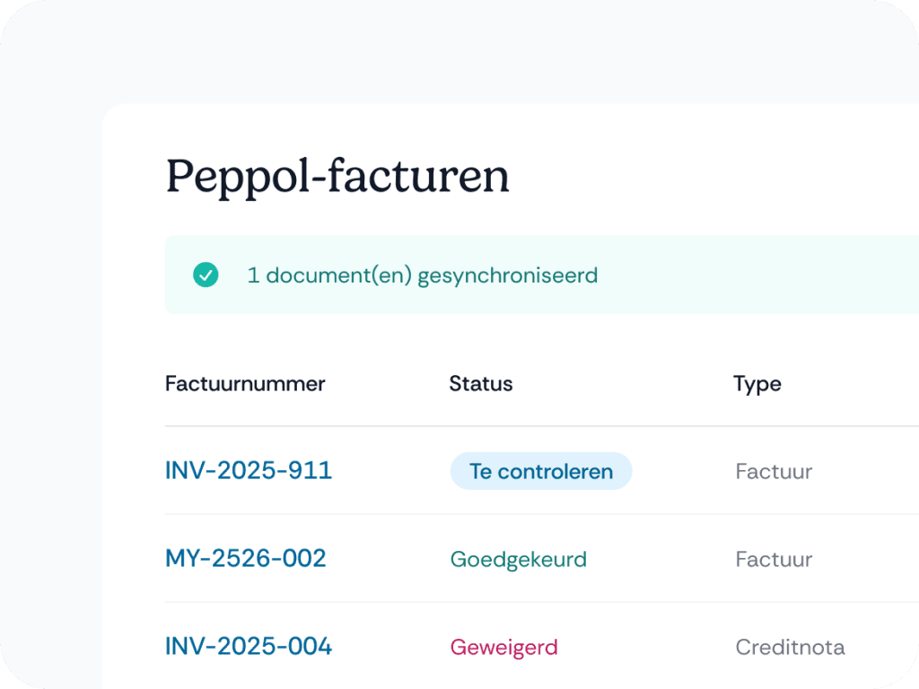 En activant votre connexion Peppol , nous enregistrons votre ACP dans le réseau Peppol et veillons à ce que toutes les factures Peppol de vos fournisseurs soient automatiquement intégrées dans votre gestion financière.